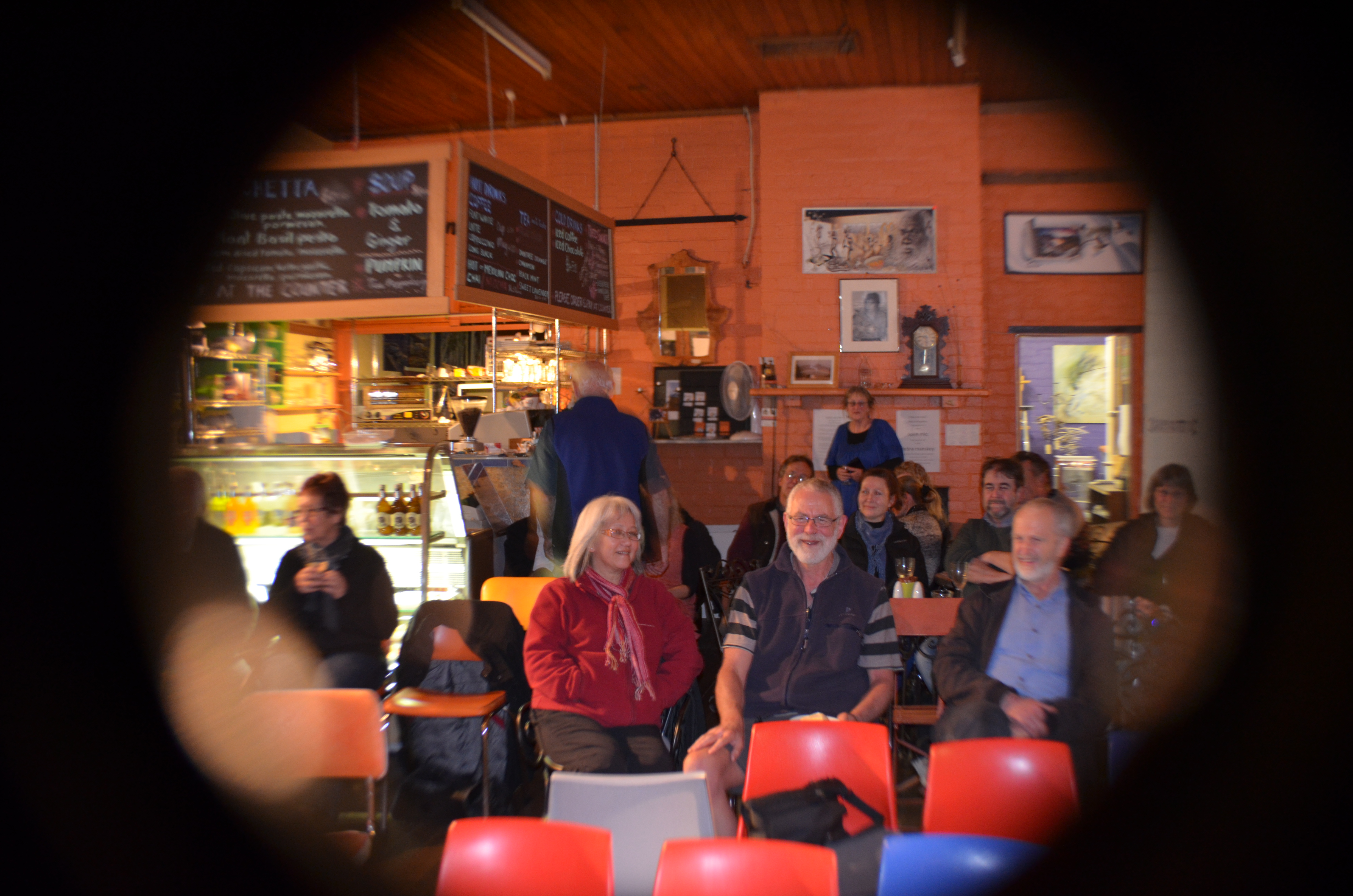 weather closed in again. This time there was thunder, lightning and torrential rain, and still people braved the elements! I met some great folks that night and reacquainted myself with a few more! I ended up playing for over two hours, telling stories and having a really lovely time. I really wish I could have transported the venue and the audience down to Hobart. There really aren’t enough listening venues – and audiences to match – anymore.