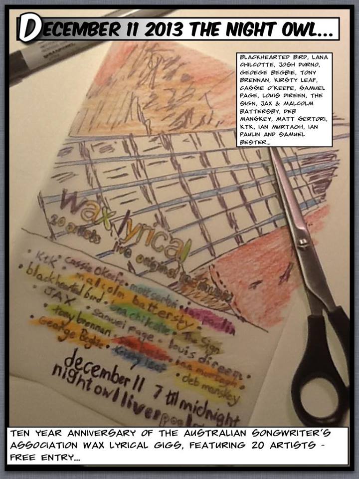 In December, it will be ten years since the Australian Songwriters Association (Tasmania) reignited at The Telegraph Hotel. Apart from making me feel really old, it’s fabulous to see how many performers from those days are still playing in venues here in Tasmania as well as interstate and overseas. In honour of the occasion, a very special ASA night is planned for Wednesday 11th December at The Night Owl Cafe in Liverpool Street, Hobart. The best part for me is that students of mine, Cassie O’Keefe, Kirsty Leaf and the fabulous Jax will all be performing, along with myself and Mal.