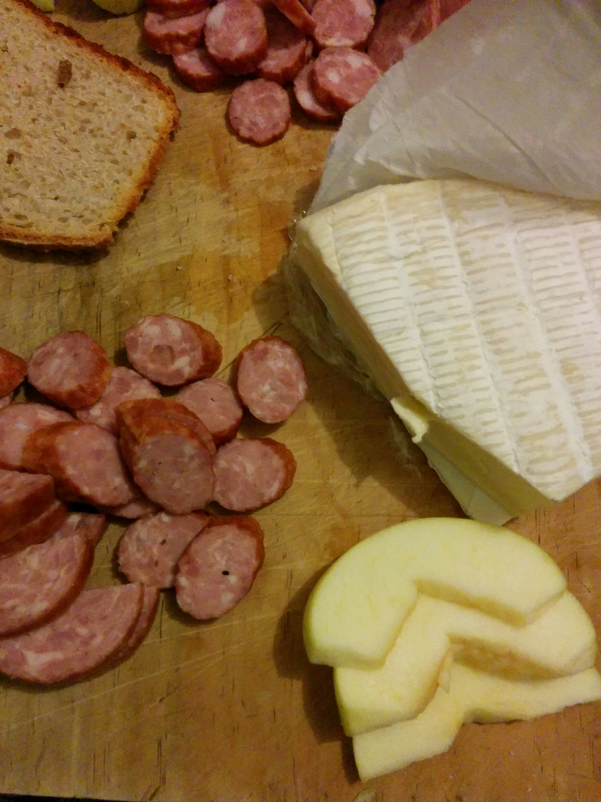 And around the corner from the garden centre is one of my all time favourite food shops – Ziggy’s Supreme Smallgoods. These folks make and sell their own smallgoods as well as local and imported cheeses, pickles and (mostly Polish) biscuits and canned goods. I restrained myself to Cabanossi and Ukrainian sausage, Chicken Kiev, Chorizo (both for later in the week), fresh sliced Ziggy’s bacon and a couple of cheeses – because cheese! So tonight’s dinner was a veritable feast of the two sausages and one of the cheeses, served with thin sliced, toasted home made sourdough and slices of fresh apple. It was bliss!