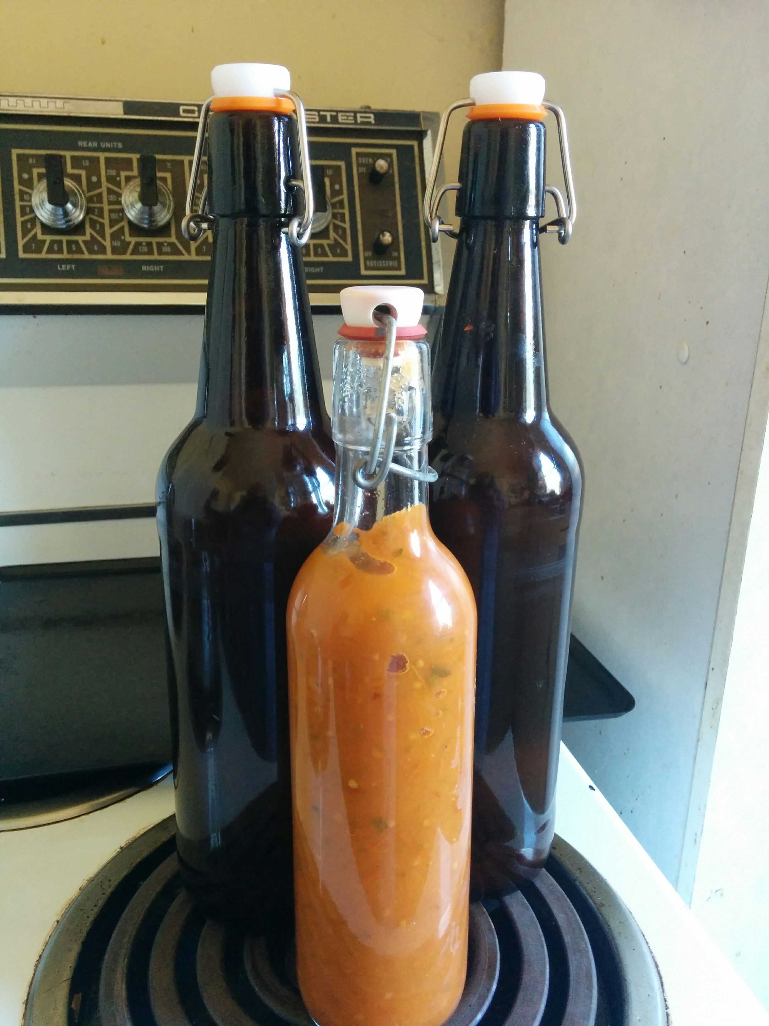This recipe made just over 2 liters and can be bottled in smaller jars as well – I just have lots of swing top bottles this year!